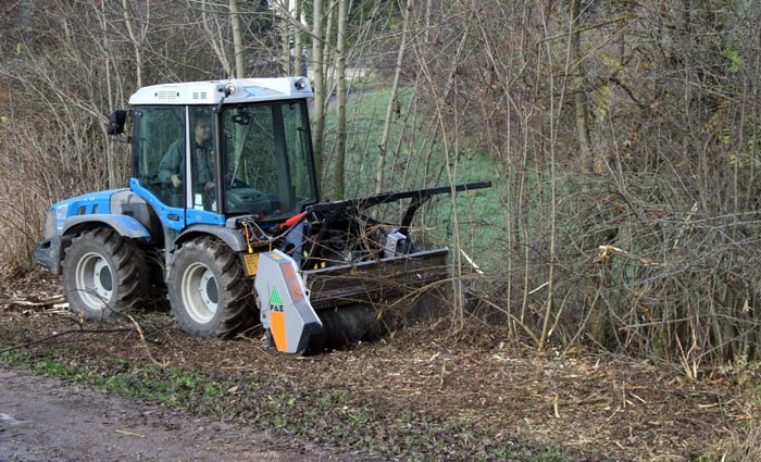In standard version as forestry mulcher for mulching and subsequent cleaning of bushes and small trees up to a maximum diameter of 12 cm/5”.