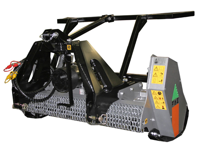 Forestry mulcher with fixed teeth rotor for tractors between 50 and 80 HP.